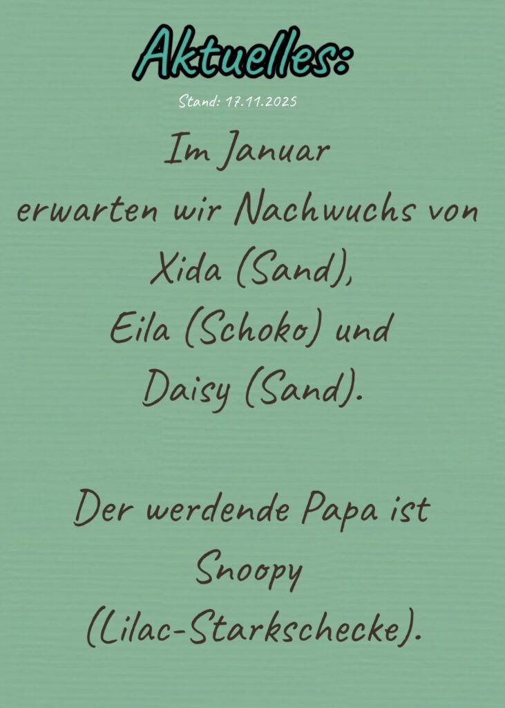 12.10.25 Elexa ♀ (Lilac) -reserviert-, Enny ♀ (Sand) -reserviert-